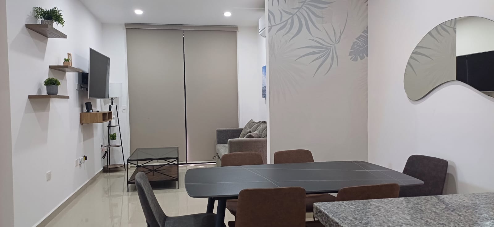 Elegantly appointed and fully furnished condominium ideally located. This sophisticated residence boasts 2 bedrooms, 2 bathrooms, security cameras, private parking, and high-speed WiFi. Attica Departamentos provides a luxurious Roof Garden perfect for entertaining and relaxation, creating a harmonious atmosphere for quality time with friends and family.